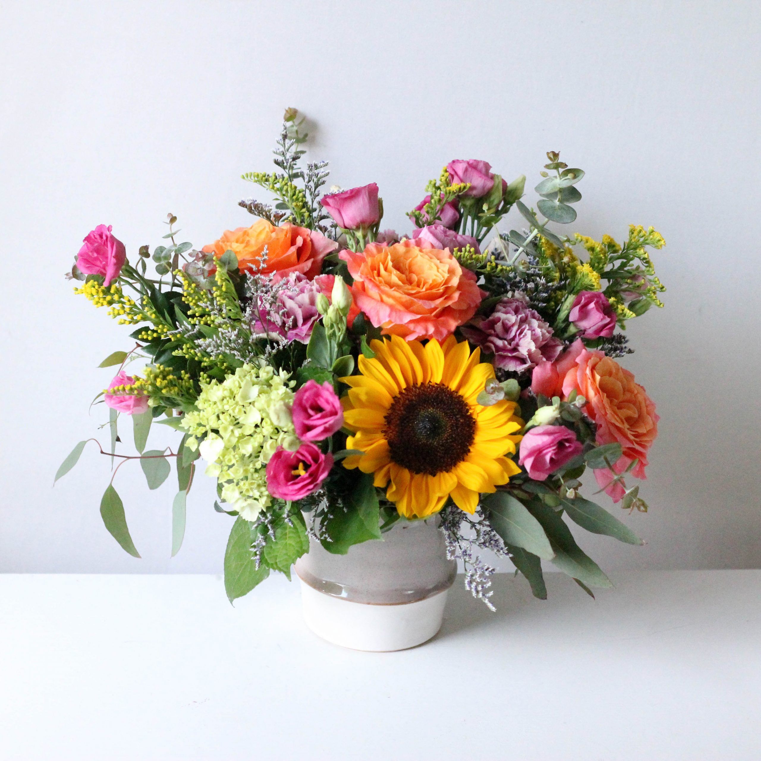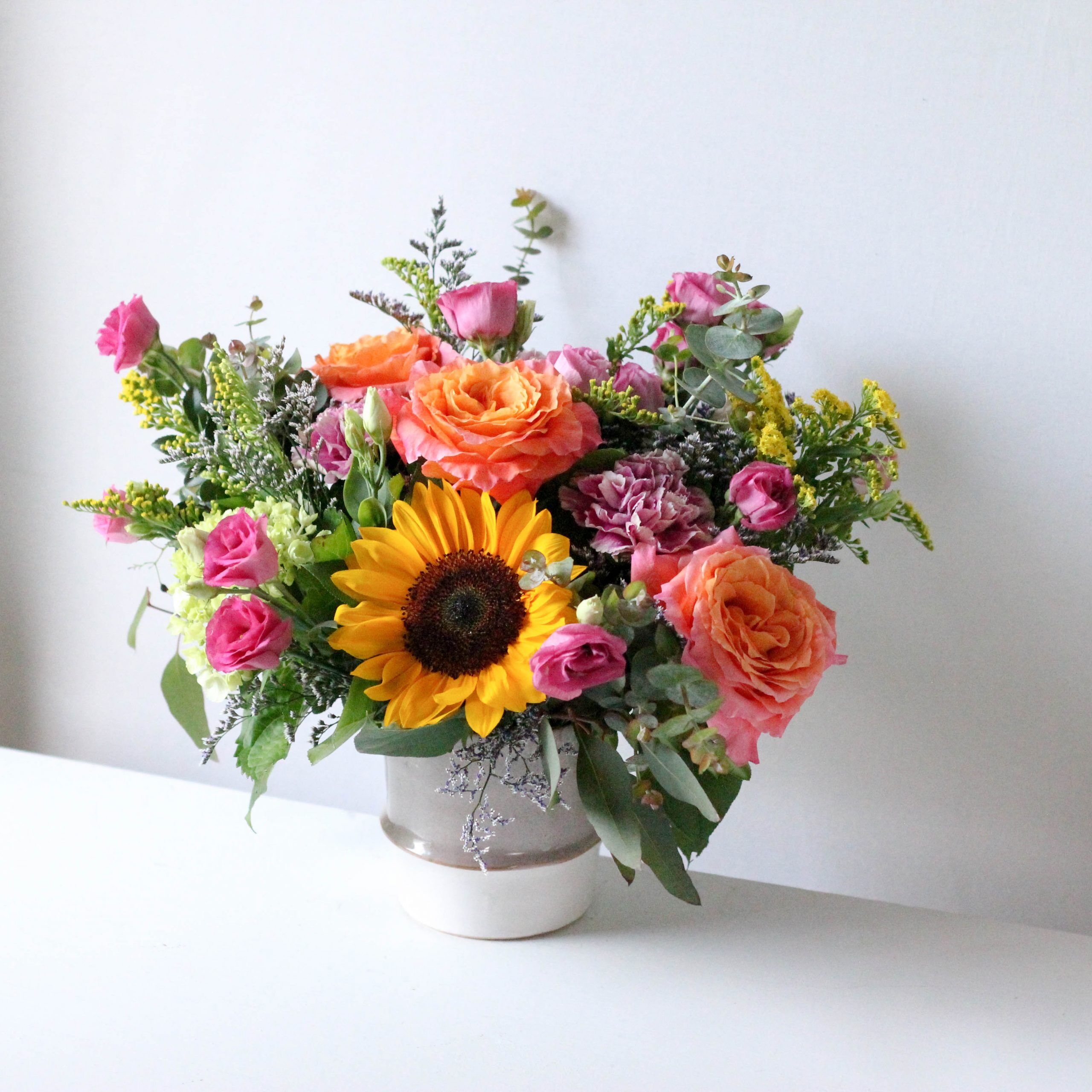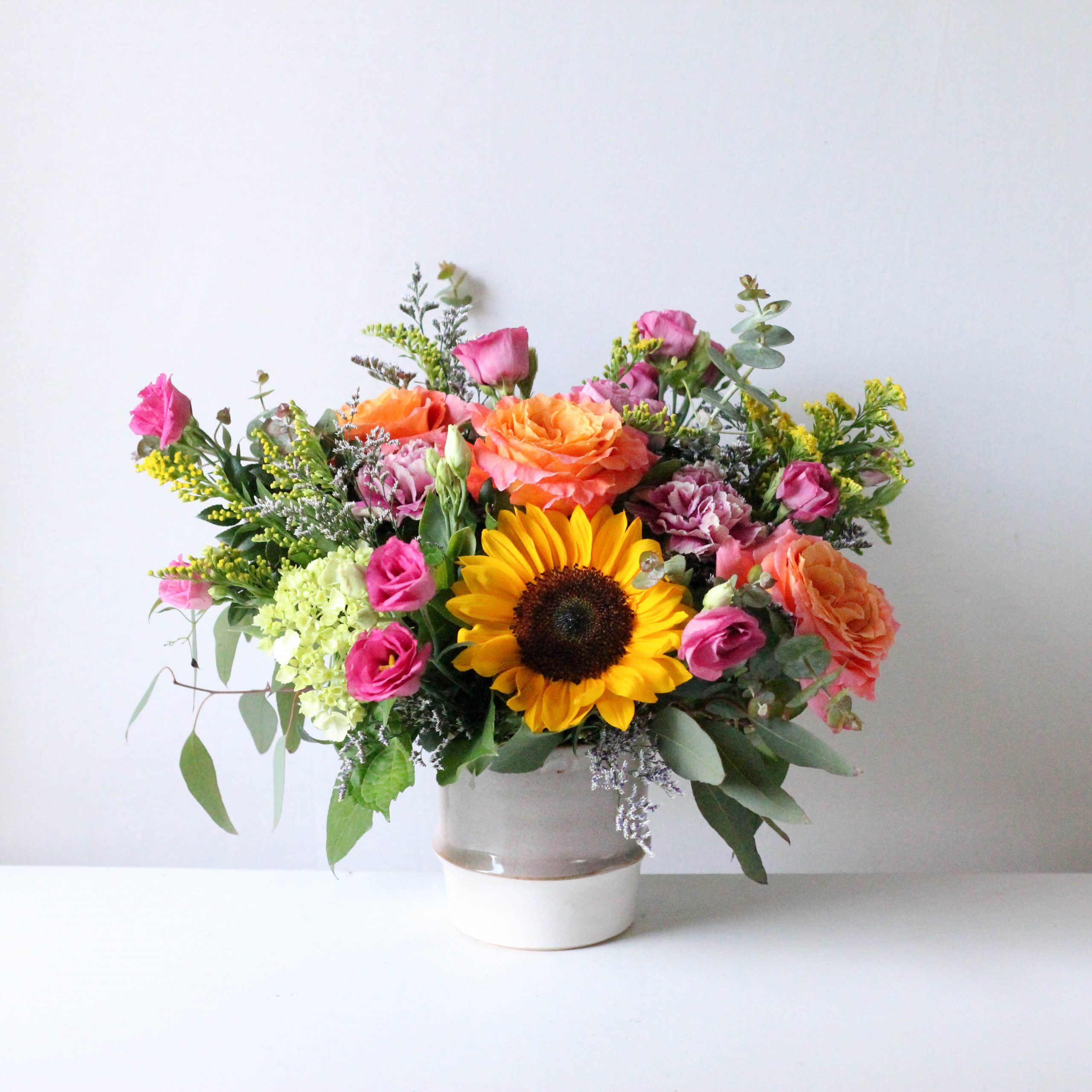 Arranged in a ceramic Valley pot; Arrangement measures approx. 15″ W x 13″ H