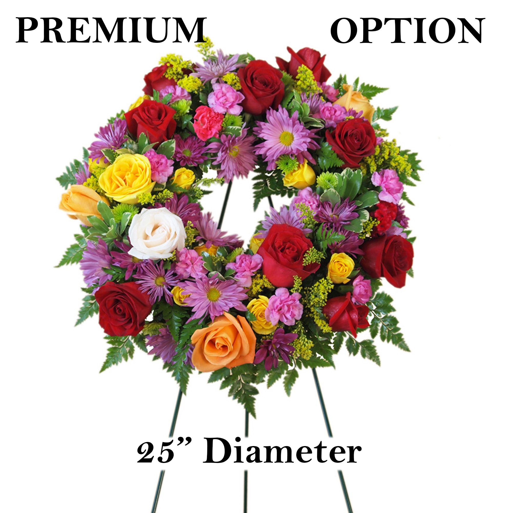This colorful wreath allows you to express your sympathy for the passing of a loved one while still celebrating the life they led.