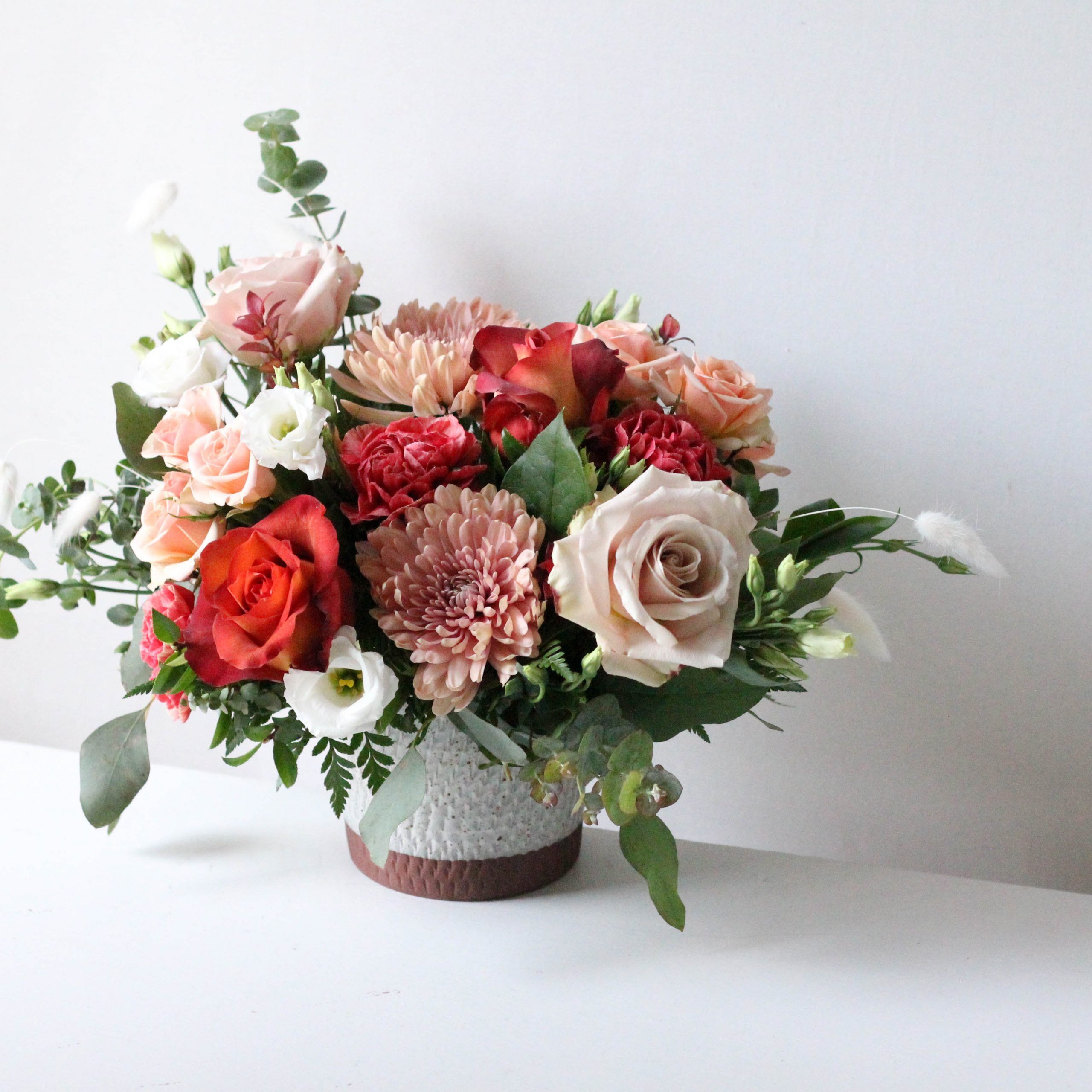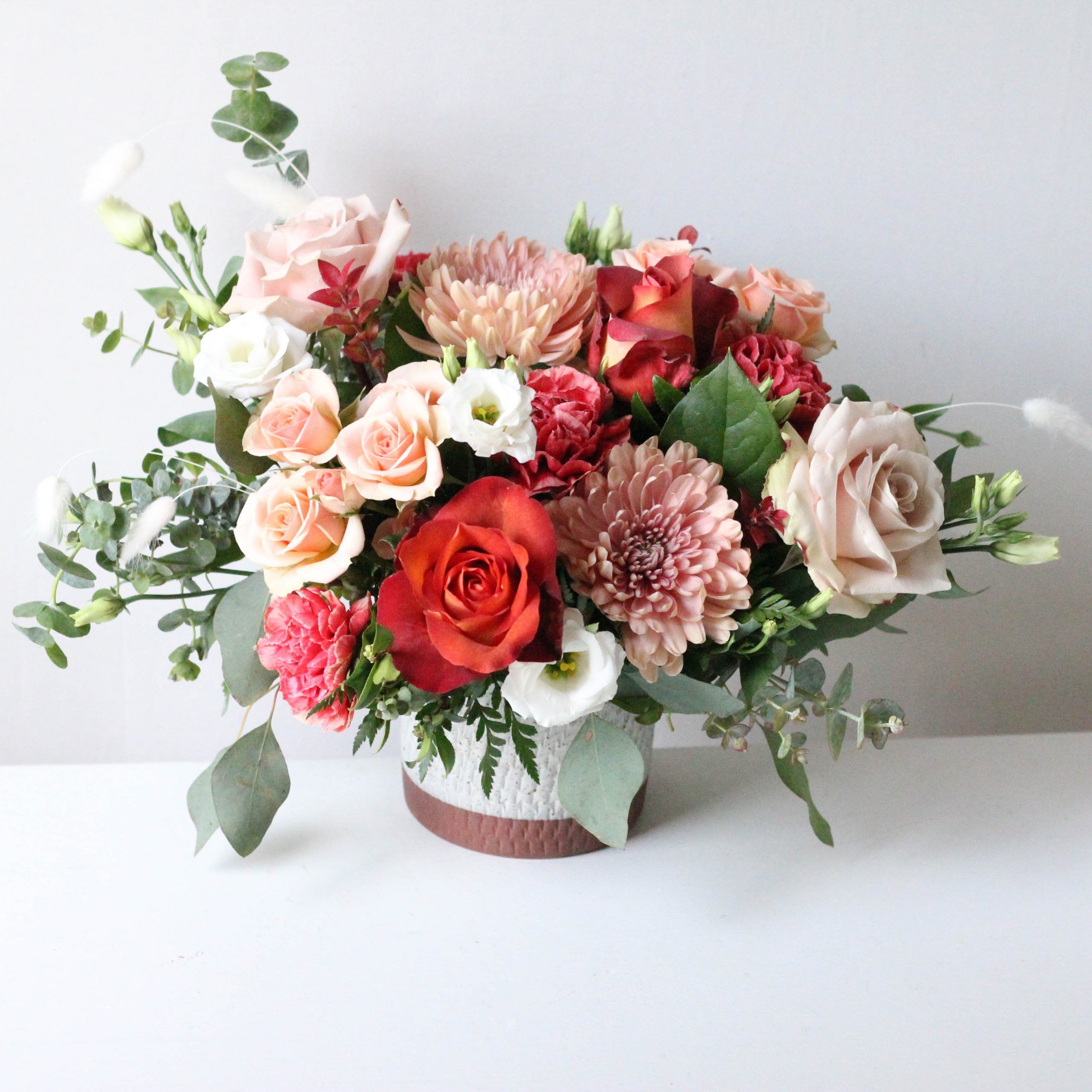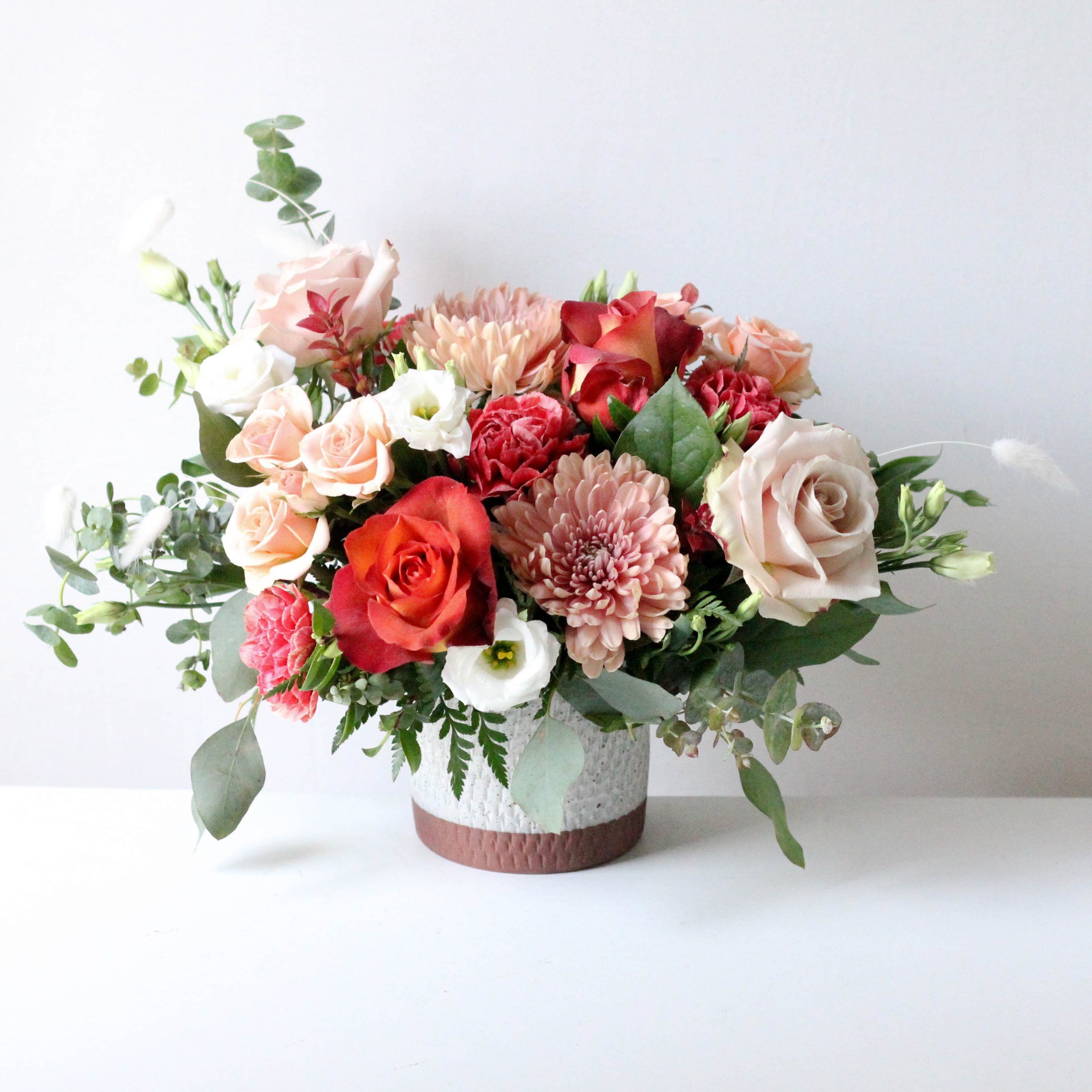 Delivered in a Como pot; Arrangement measures approx. 14″ W x 11″ H