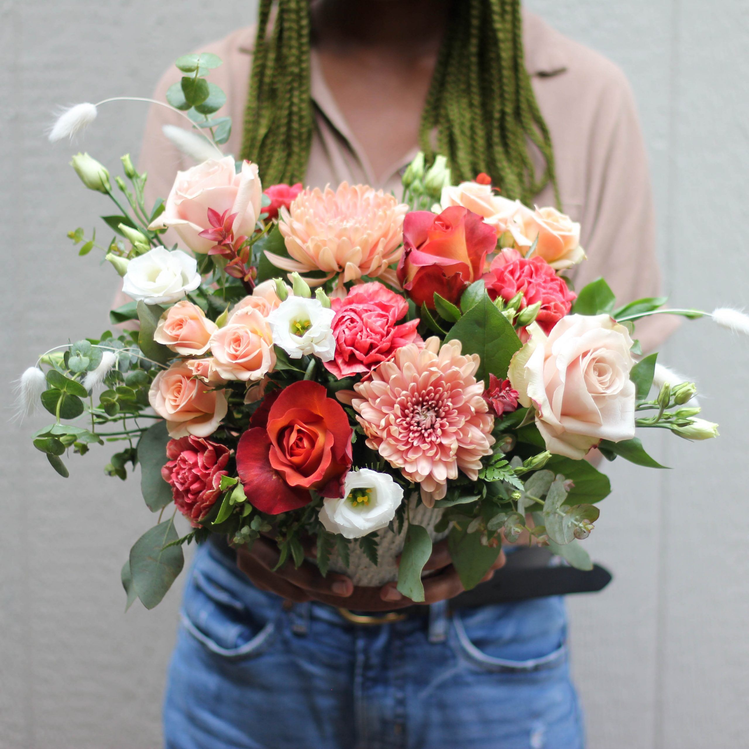 This sugary sweet fresh floral arrangement displays caramel-toned blooms with fabulous Coffee Break roses.