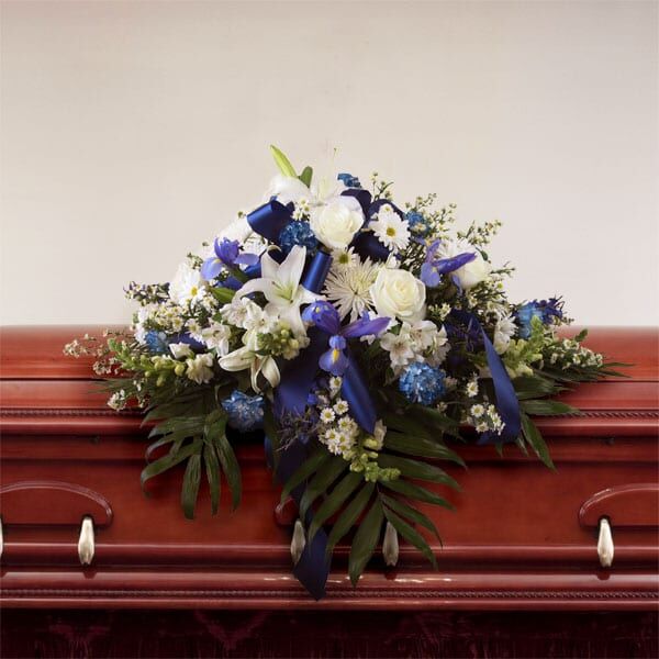 Give a send off fitting for a forever fan with this beautiful fresh flower casket spray Dallas colors will be represented in blues and whites.