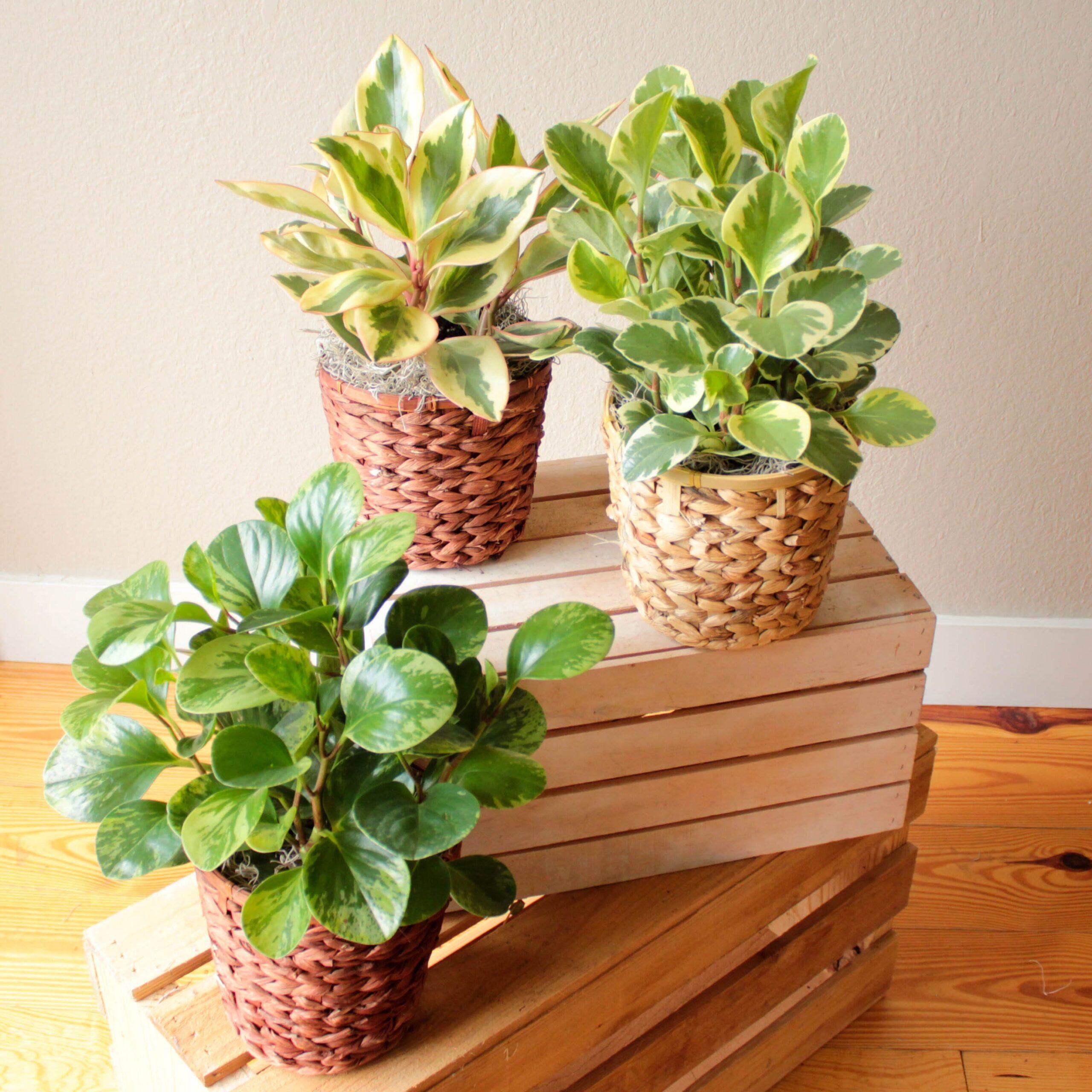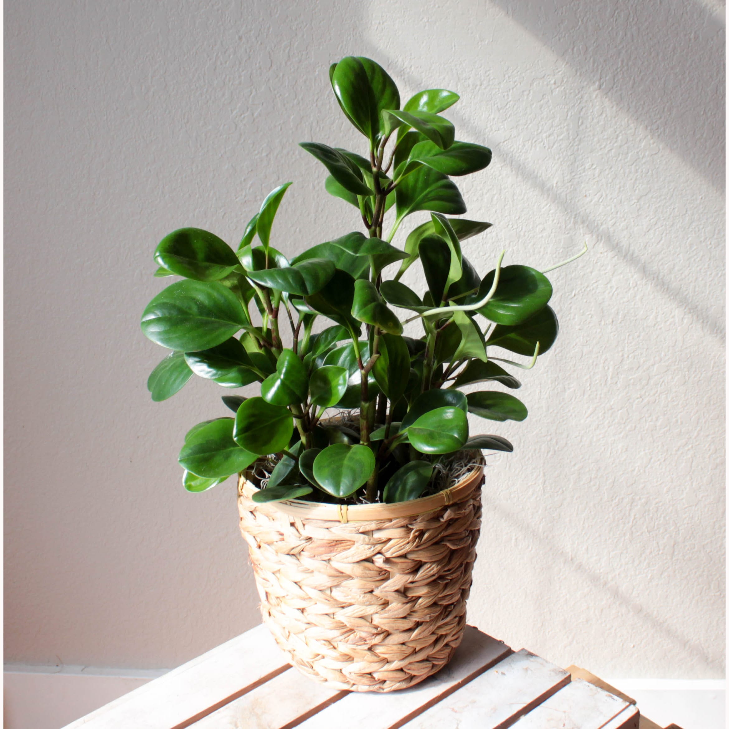 Plant will be delivered in a wicker basket, unless upgraded, and accented by Spanish moss and a bow.