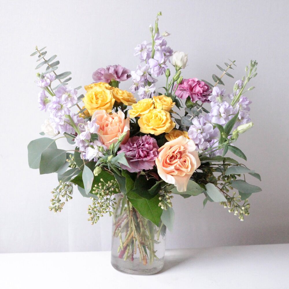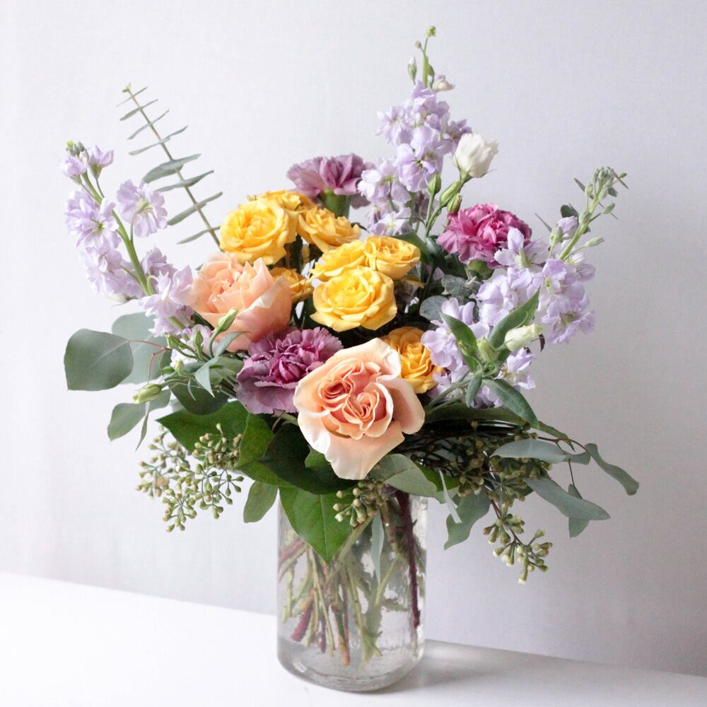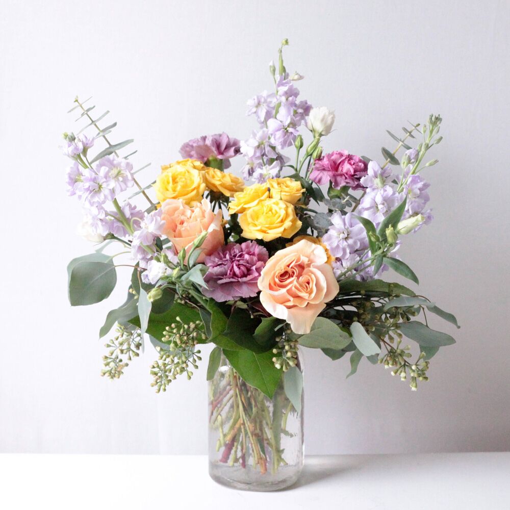 A fresh, garden style arrangement of seasonal blooms that will bring the relaxing feeling of outside on a sunny Austin day, indoors.